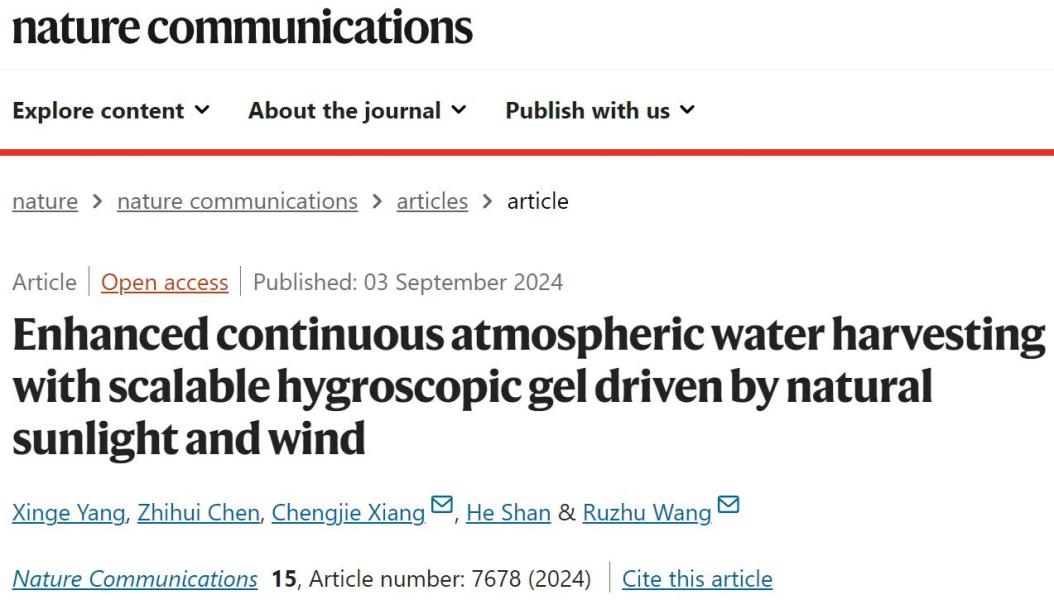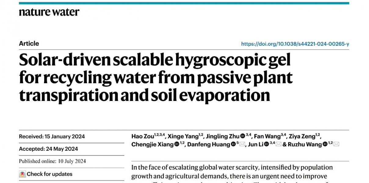 王如竹團(tuán)隊(duì)提出太陽能驅(qū)動(dòng)水凝膠空氣取水材料,助力溫室水循環(huán)和再利用