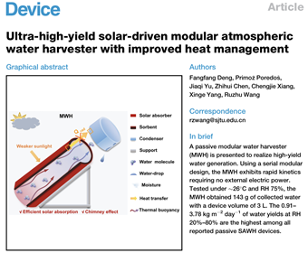 王如竹ITEWA團(tuán)隊(duì)提出基于先進(jìn)熱管理的超高產(chǎn)量太陽能驅(qū)動(dòng)模塊化空氣取水裝置