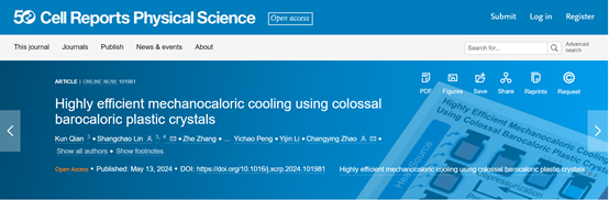 林尚超課題組在基于龐壓卡相變塑晶的大規(guī)模固態(tài)冷卻技術(shù)上取得突破