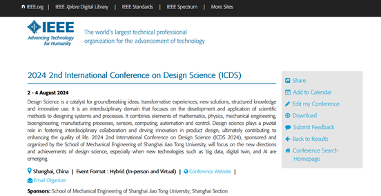 2024年第二屆設(shè)計科學(xué)國際學(xué)術(shù)會議 (ICDS 2024)將于2024年8月2-4日在上海召開,由上海交通大學(xué)機械與動力工程學(xué)院、機械系統(tǒng)與振動全國重點實驗室主辦。上海交通大學(xué) -集思未來交叉學(xué)科創(chuàng)新設(shè)計聯(lián)合研究中心、上海市現(xiàn)代設(shè)計法研究會及謝友柏設(shè)計科學(xué)研究基金協(xié)辦。