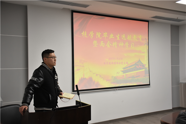 3月22日,核學(xué)院碩博聯(lián)合黨支部開展了新學(xué)期第一次組織生活會,會議主題為“兩會精神學(xué)習(xí)暨畢業(yè)生黨員遠(yuǎn)航教育”。核學(xué)院教師黨員熊進(jìn)標(biāo)、思政教師余天佐出席了本次生活會。