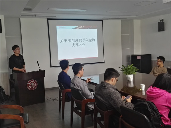 會議的最后一項議程是接收鄭洪波同學(xué)為預(yù)備黨員的支部大會。此時,由第四支部書記高玉龍主持,他履行程序,介紹鄭洪波的基本情況后,由鄭洪波本人介紹其對黨的認(rèn)識、入黨動機(jī)和在考察期內(nèi)的主要表現(xiàn)和進(jìn)步,又請介紹人發(fā)表意見,最后進(jìn)行全部與會黨員的投票表決。經(jīng)過投票,鄭洪波同學(xué)以全票通過正式成為預(yù)備黨員。
