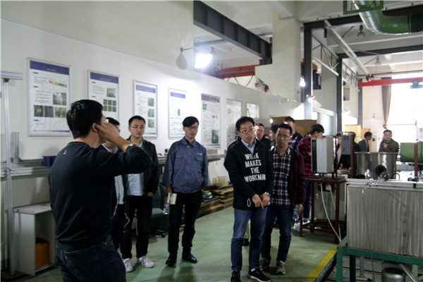 最后,設(shè)計聯(lián)合黨支部成員參觀了葉輪機所的實驗大廳。葉輪機所遲重然老師為大家介紹了系所的發(fā)展歷史、師資情況、主要研究方向以及實驗室正在進行的研究課題。通過參觀,雙方都認為深入推進校企項目合作是非常必要的。
