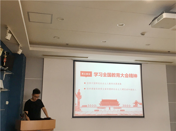 隨后,同學(xué)們集中學(xué)習(xí)了習(xí)近平總書記在全國教育大會(huì)上的重要講話,深刻領(lǐng)會(huì)到了堅(jiān)持中國特色社會(huì)主義教育發(fā)展道路,培養(yǎng)德智體美勞全面發(fā)展的社會(huì)主義接班人,加快推進(jìn)教育現(xiàn)代化、建設(shè)教育強(qiáng)國、辦好人民滿意的教育的重要性。學(xué)生黨員,是社會(huì)主義高等教育的直接受益者,更應(yīng)該從全國教育大會(huì)精神中汲取豐富營養(yǎng),堅(jiān)定理想信念、厚植愛國情懷、加強(qiáng)品德修養(yǎng)。最后,程新毓介紹了新生入黨的注意事項(xiàng)以及考核制度等事項(xiàng)。