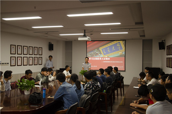 為了加深與會(huì)同學(xué)對(duì)習(xí)近平總書記講話精神的理解,賴平將教育大會(huì)精神與熱點(diǎn)時(shí)事相結(jié)合,圍繞五個(gè)話題展開了專題討論。同學(xué)們紛紛針對(duì)生活中身邊的所見所聞以及時(shí)事熱點(diǎn),進(jìn)行了積極熱烈的交流。博士生黨員王凡表示,作為一名接受過高等教育的學(xué)生,不管身處何地,身居何職,都要有自己的道德操守,切不可做違法違紀(jì)之事。博士生夏建華表示,所謂“身正為范”,教師自身思想道德水平對(duì)學(xué)生價(jià)值觀的培養(yǎng)至關(guān)重要。不斷提升師德水平是立德樹人的關(guān)鍵,身為教師更不能做違規(guī)違紀(jì)之事。碩士生黃波分享了其同學(xué)在新疆支教的故事,并對(duì)什么是真正的為教育事業(yè)做奉獻(xiàn)表達(dá)了自己的認(rèn)識(shí)和看法。入黨積極分子胡真認(rèn)為,從事教育事業(yè)和做科學(xué)研究是相通的,不能名利至上、追逐熱點(diǎn);要向黃旭華、彭士祿老先生學(xué)習(xí),板凳甘做十年冷,要擔(dān)得起寂寞和平凡,把力量貢獻(xiàn)到祖國最需要的地方去。同學(xué)們紛紛對(duì)教育的立德樹人使命和對(duì)學(xué)生思想價(jià)值觀的引領(lǐng)表達(dá)了自己的觀點(diǎn)和看法,討論活動(dòng)收獲了熱烈的反響。