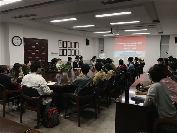 10月17日下午,機器人所研究生第一黨支部在機械樓F210會議室召開“學習全國組織工作會議和宣傳工作會議精神” 組織生活會及支部發(fā)展大會,支部指導老師郭莉出席。會議由支部書記王志永主持。