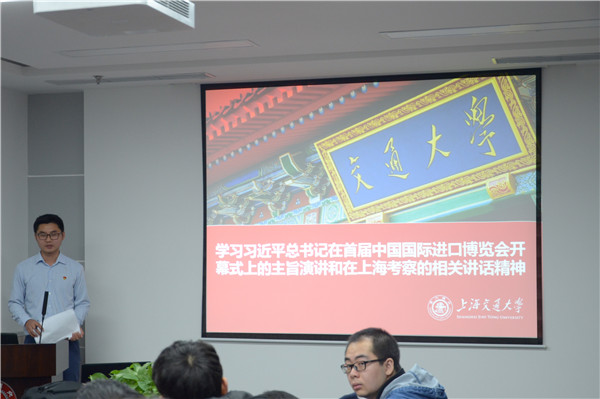 11月23日下午,核科學與工程學院碩博聯(lián)合黨支部在機械樓F210召開以“學習習近平總書記在首屆中國國際進口博覽會開幕式上的主旨演講和在上海考察的相關講話精神”為專題的組織生活會。碩博聯(lián)合黨支部全體黨員和部分積極分子參加了本次學習和討論。會議由博士生黨支部書記賴平主持。
