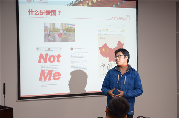 隨后,賴平提到了近期發(fā)生的三個熱點事件:杜嘉班納辱華事件、“馬拉松遞國旗”事件和金馬電影節(jié)頒獎鬧劇,同時向大家拋出了一個問題:在進一步對外開放的環(huán)境下,什么樣的做法是理性、恰當?shù)膼蹏Ec會黨員和積極分子結(jié)合習近平總書記講話精神,圍繞正確的愛國觀展開熱烈的討論。李磊豪首先發(fā)言,他表示面對辱華言論必須給予嚴厲打擊,放任此種行為會嚴重傷害我們的民族情感;秦家祿則認為,“應該展示大國胸襟,不必理會此種言論”,更重要的是“搞建設、謀發(fā)展”,用實力說話。與會黨員和積極分子也隨之發(fā)表各自的看法和觀點。經(jīng)過此次對于講話精神的深入學習和熱烈討論,支部成員紛紛表示要用理性思維看待愛國問題,以實際行動實踐愛國精神,在進一步對外開放的新局面中為中國發(fā)展盡自己的力量。