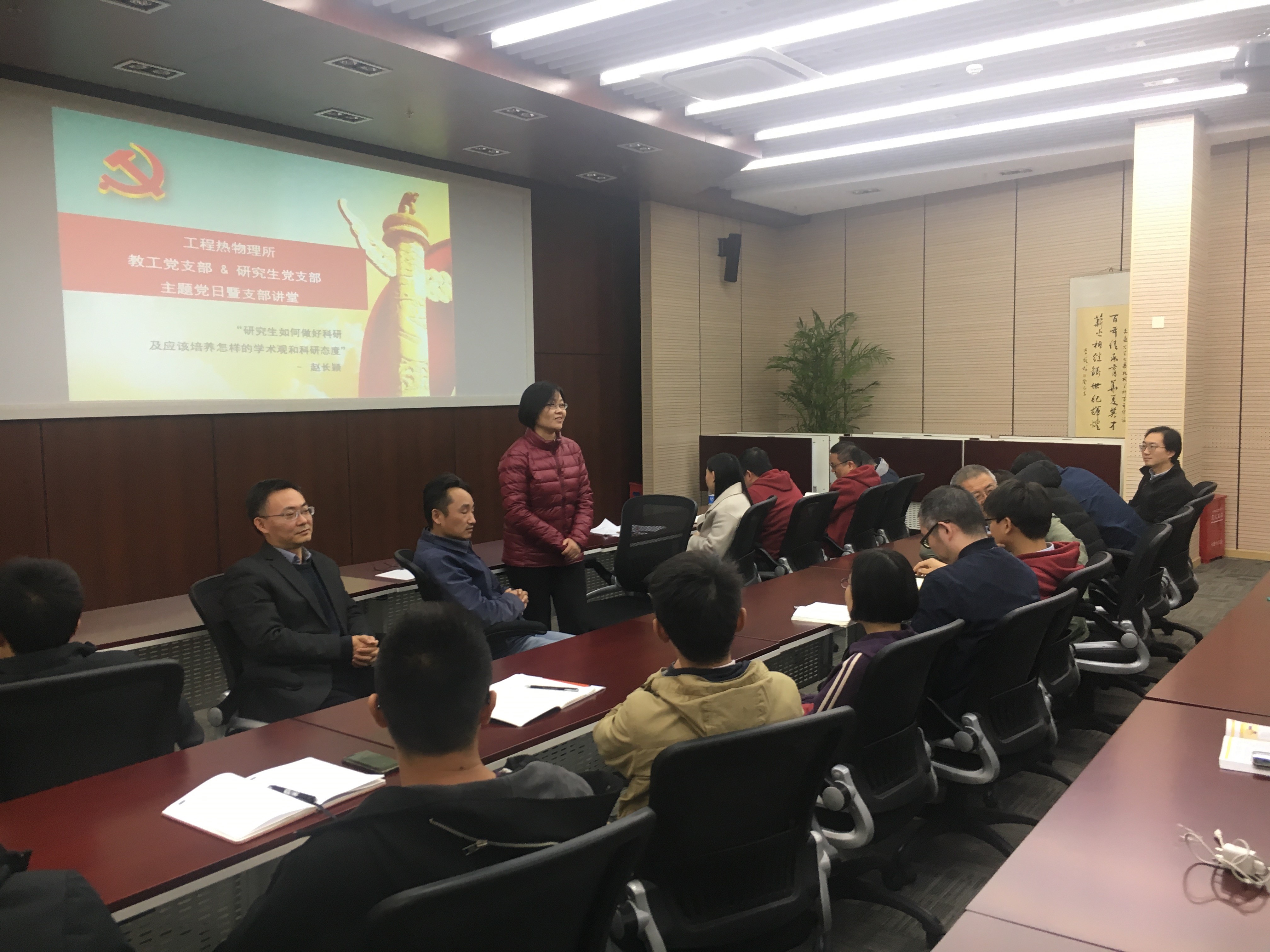 12月5日,工程熱物理研究所教工黨支部聯(lián)合研究生黨支部舉辦“支部講堂”主題黨日活動,圍繞研究生如何做好科研工作、應(yīng)培養(yǎng)怎樣的學(xué)術(shù)觀和科研態(tài)度展開討論。學(xué)院黨委副書記顧希垚、工程熱物理研究所所長趙長穎、教工黨支部書記王平陽以及支部成員等80余人參加了活動。