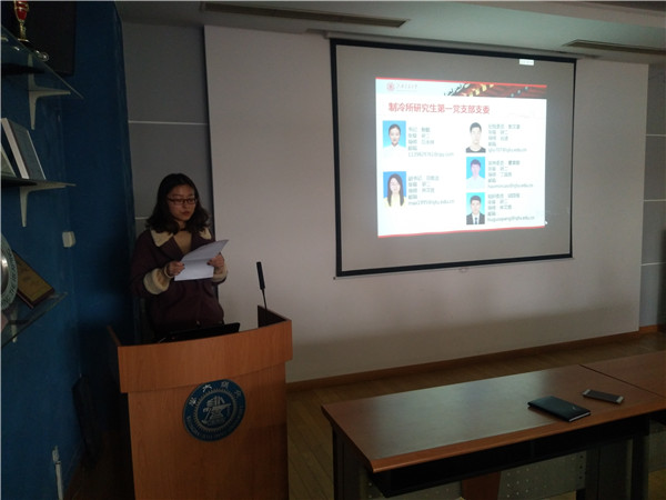 12月19日,制冷所研究生第一黨支部交通安全宣傳教育暨“雙評雙議雙公開”專題組織生活會在機械動力學院F310舉行。大會由制冷所研究生第一黨支部書記殷靚主持。