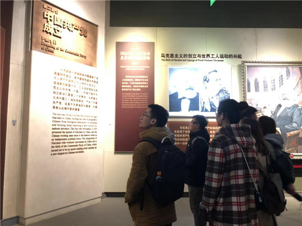 隨后的展覽共分為兩大主題——開天辟地和光輝歷程。黨員們首先參觀了以“開天辟地”為主題的展廳,了解十月革命以來(lái),中國(guó)革命的新篇章。十月革命一聲炮響,使馬克士列寧主義走進(jìn)了中國(guó),此后,馬克思主義與中國(guó)工人運(yùn)動(dòng)相結(jié)合,產(chǎn)生了中國(guó)共產(chǎn)黨,這是開天辟地的大事變。