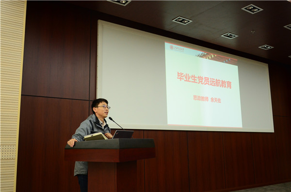 在畢業(yè)生黨員遠(yuǎn)航教育環(huán)節(jié),余天佐和熊珍琴分別致辭。
