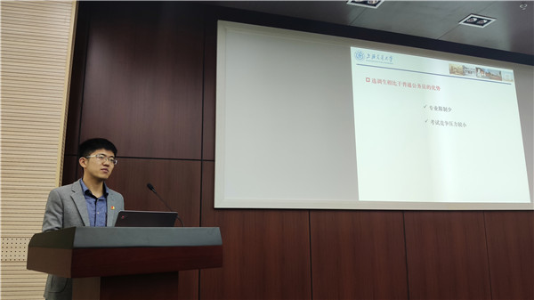 在優(yōu)秀黨員分享環(huán)節(jié),2015級(jí)博士研究生、2018年國(guó)家獎(jiǎng)學(xué)金獲得者許銳從參與項(xiàng)目、科研歷程和論文、專(zhuān)利撰寫(xiě)等方面分享了自己的心得體會(huì)。2016級(jí)碩士研究生杜政瑀選擇了前往中國(guó)核動(dòng)力研究設(shè)計(jì)院就業(yè),介紹了其就職單位,并分享了自己的求職過(guò)程。2015級(jí)博士研究生胡振梟就自己為什么選擇成為選調(diào)生、如何準(zhǔn)備選調(diào)生考試和面試等跟同學(xué)們做了交流。