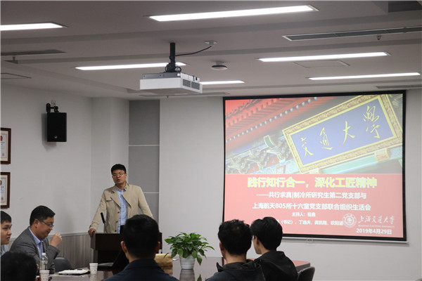 4月29日,航天805所十六室黨支部與上海交通大學(xué)機(jī)械與動(dòng)力工程學(xué)院制冷所研究生第二黨支部在F210召開聯(lián)合組織生活會(huì)。航天805研究所十六室黨支部書記胡迪科,丁逸夫,龔凱翔學(xué)長(zhǎng)以及制冷所研究生第二黨支部全體黨員出席會(huì)議。會(huì)議由第二黨支部生活委員程鑫組織召開。