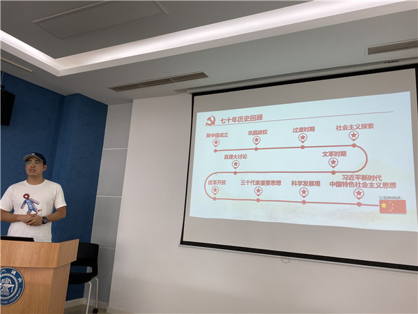 之后,馬思遠(yuǎn)向全體與會(huì)同志強(qiáng)調(diào)了黨支部生活會(huì)的組織紀(jì)律,并對(duì)請(qǐng)假流程和要求進(jìn)行了講解,以期達(dá)到對(duì)組織生活會(huì)進(jìn)行規(guī)范的目的。今年是中華人民共和國(guó)成立七十周年,因此馬思遠(yuǎn)對(duì)新中國(guó)建國(guó)以來的七十年歷程進(jìn)行了回顧和總結(jié),新中國(guó)能夠取得現(xiàn)在這樣舉世矚目的成就,離不開中國(guó)共產(chǎn)黨的領(lǐng)導(dǎo),在今后中國(guó)的發(fā)展過程中,要依舊牢牢堅(jiān)持中國(guó)共產(chǎn)黨的領(lǐng)導(dǎo)不動(dòng)搖,確保黨對(duì)國(guó)家一切工作的領(lǐng)導(dǎo)地位和核心地位。