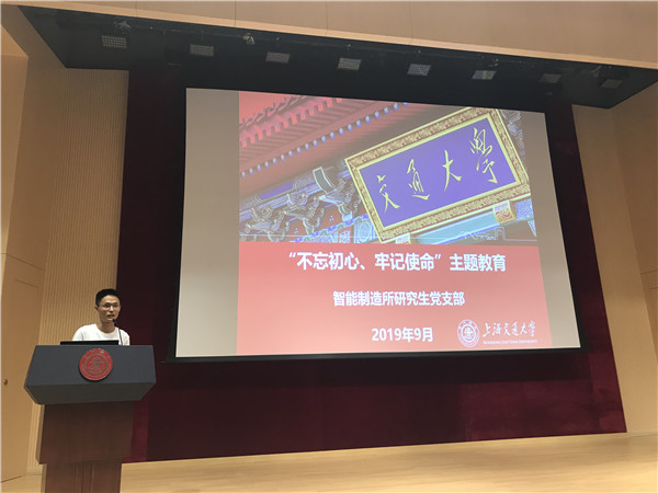 9月29日上午,智能制造所研究生黨支部成員在高田會(huì)堂舉辦“不忘初心、牢記使命”主題教育組織生活會(huì),智能制造所教工黨支部書(shū)記楊培中、智能制造所思政陳俞婕以及全體研究生黨支部成員參加了會(huì)議。本次大會(huì)由智能制造所研究生黨支部書(shū)記王玉坤主持。生活會(huì)共分為三項(xiàng)議程:“思源致遠(yuǎn)、揚(yáng)帆啟航”迎新活動(dòng)、“不忘初心、牢記使命”主題教育和“慶祝祖國(guó)70華誕”主題活動(dòng)。