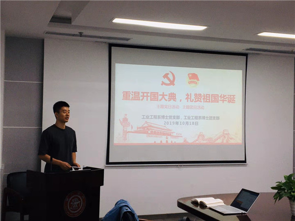 10月18日下午,機械與動力工程學院工業(yè)工程系博士研究生黨團支部聯(lián)合組織黨員、入黨積極分子和系所其他學生開展“重溫開國大典,禮贊祖國華誕”主題黨日活動與團日活動。