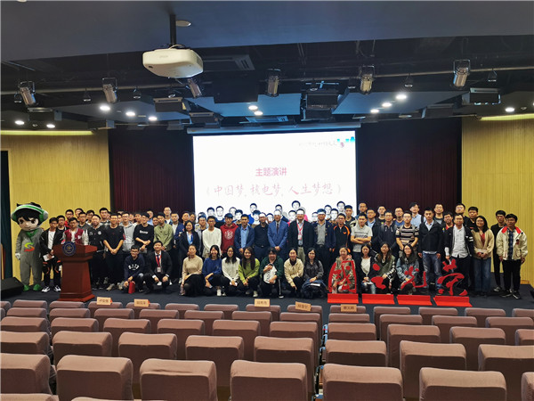 活動開始,領(lǐng)導(dǎo)嘉賓共同進行了“核聚夢想,和創(chuàng)未來”啟動儀式。邱忠明為同學(xué)們做了題為“中國夢,核電夢,人生夢想”的主題授課。邱忠明分別對中國核電發(fā)展的主要歷程,上海核工院參與重大專項研發(fā),面向未來的核能科技創(chuàng)新,核電人的初心的使命,新時期上海核工院幾個話題進行了講述和介紹。上海核工院前身是七二八工程研究設(shè)計院,始建于1970年2月8日,與中國核電事業(yè)同時起步。在五十年的發(fā)展歷程中,經(jīng)歷了中國核電的自主創(chuàng)業(yè)引進、消化吸收再創(chuàng)新歷程,在大型壓水堆核電國家科技重大專項中承擔(dān)了重要角色。邱忠明強調(diào),在新的征程中,上海核工院將秉承核電創(chuàng)業(yè)人的初心,勇?lián)穗姀妵厝危燥枬M的活力和熱情向未來核能科技創(chuàng)新領(lǐng)域進軍。