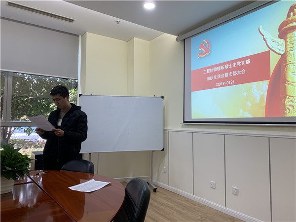 12月6日中午,工程熱物理研究所碩士生黨支部在機械樓F103會議室召開了十二月組織生活會暨支部大會。會議由碩士生黨支部書記孫巖松主持。