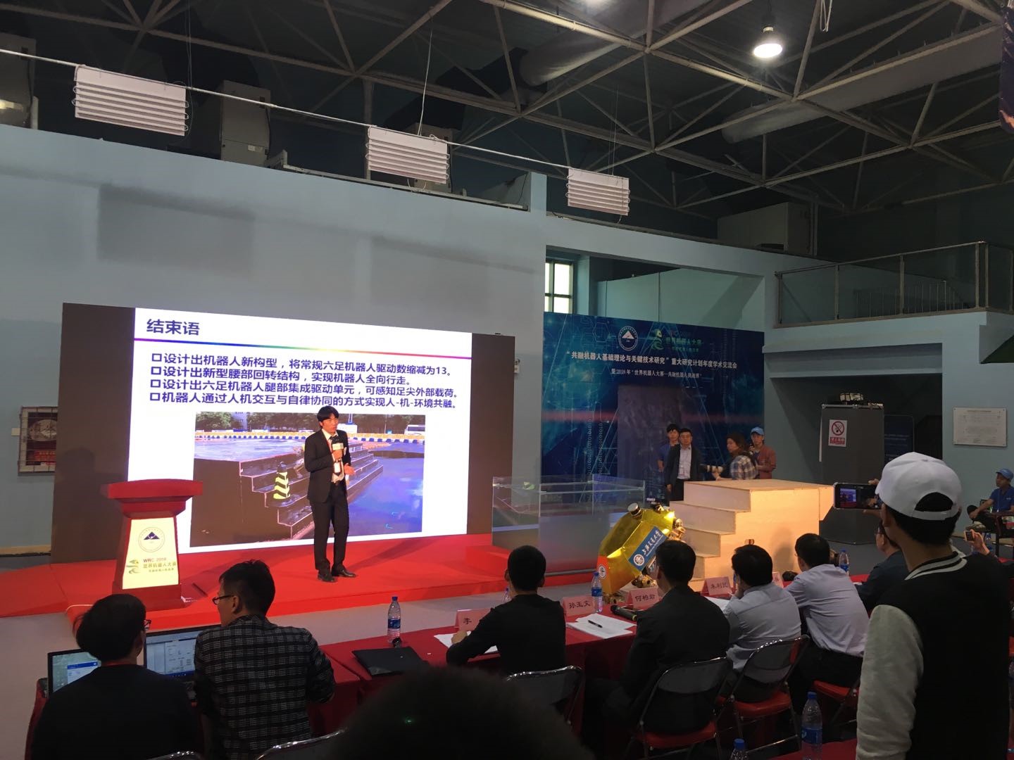 在創(chuàng)新技術(shù)路演組比賽中,六足機(jī)器人現(xiàn)場展示了自主踏障、攀爬45度樓梯等高難度動(dòng)作;青年創(chuàng)意組比賽中,團(tuán)隊(duì)展示了變構(gòu)態(tài)輪腿移動(dòng)作業(yè)機(jī)器人創(chuàng)新設(shè)計(jì)方案。