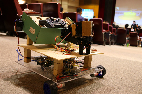 決賽中的八支隊(duì)伍都頗具實(shí)力,為觀眾們帶來了極為精彩的比賽。參賽隊(duì)伍在小車性能、技師操作及隊(duì)員配合等方面進(jìn)行了全方位較量,賽況尤為激烈,由于雙方小車相持不下,相互糾纏,最后根據(jù)規(guī)則重回出發(fā)點(diǎn)的情況常常發(fā)生。在最后一場決定冠亞軍的比賽中,賽況更是一波三折,參賽選手們精彩的策略、沉穩(wěn)的操作使得臺下響起了一陣又一陣的掌聲。來自機(jī)械動力學(xué)院的9號隊(duì)伍在一次戰(zhàn)術(shù)性失誤后,失去前期優(yōu)勢,然而,憑借操作手無懈可擊的操作,在最后的20秒內(nèi)逆轉(zhuǎn)局勢,摘下了勝利果實(shí)。歡呼與掌聲充滿了場館,選手們激動地抱在一起,共同分享此刻的喜悅。