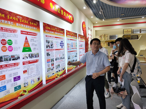 下午,實踐團(tuán)隊參觀了總體裝配與環(huán)境工程部(后簡稱總環(huán)部)。總環(huán)部副主任劉廣通為團(tuán)隊進(jìn)行介紹,總環(huán)部由原院總裝工程部、環(huán)境工程部(原航天五院511所)為主體合并組成,是集成航天器總裝與專業(yè)測試、環(huán)境模擬試驗與可靠性研究和設(shè)備研制于一體的技術(shù)實體。會后,劉廣通向團(tuán)隊介紹了黨支部文化,學(xué)黨史、悟思想、辦實事、開新局,完備的黨政思想和制度體系保障了工作的高效完成。