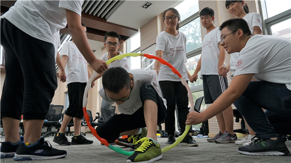 開(kāi)營(yíng)儀式結(jié)束后,梁茂宗帶領(lǐng)宜賓六中的同學(xué)們開(kāi)展了UTJS體驗(yàn)式培訓(xùn),培訓(xùn)內(nèi)容分別是“抓手指”、“松鼠與大樹(shù)”、“名字接龍”、“夢(mèng)想之門(mén)”和“漢諾塔”游戲。宜賓六中的同學(xué)們都全身心參與到團(tuán)隊(duì)游戲中,出謀劃策、共享創(chuàng)意,現(xiàn)場(chǎng)氣氛高漲。最后,同學(xué)們分享了自己在這次培訓(xùn)中的體會(huì),“包容”、“團(tuán)隊(duì)”、“溝通”等關(guān)鍵詞成為了同學(xué)們?cè)诒敬闻嘤?xùn)中最大的收獲。