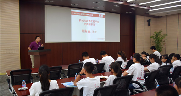 7月27日下午,上海交通大學(xué)-四川省宜賓市第六中學(xué)2018年暑期夏令營(yíng)閉營(yíng)儀式在機(jī)械與動(dòng)力工程學(xué)院振華會(huì)議室舉辦。機(jī)械與動(dòng)力工程學(xué)院黨委副書(shū)記顧希垚,學(xué)院本科生思政辦主任林秀娟,學(xué)院思政教師梁茂宗,四川省宜賓市第六中學(xué)副校長(zhǎng)熊華清和教師代表唐鵬、夏天以及宜賓六中29名學(xué)生出席了閉營(yíng)儀式。