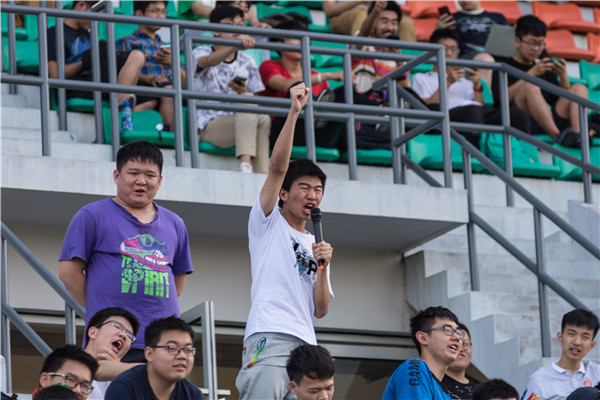 看臺上,機械與動力工程學院的觀眾們聲嘶力竭地為綠茵場上的英雄們加油。一波又一波的助威聲,無論場上球員得球、失球,進球、丟球,不離不棄。臺上臺下眾志成城,甚是感人。