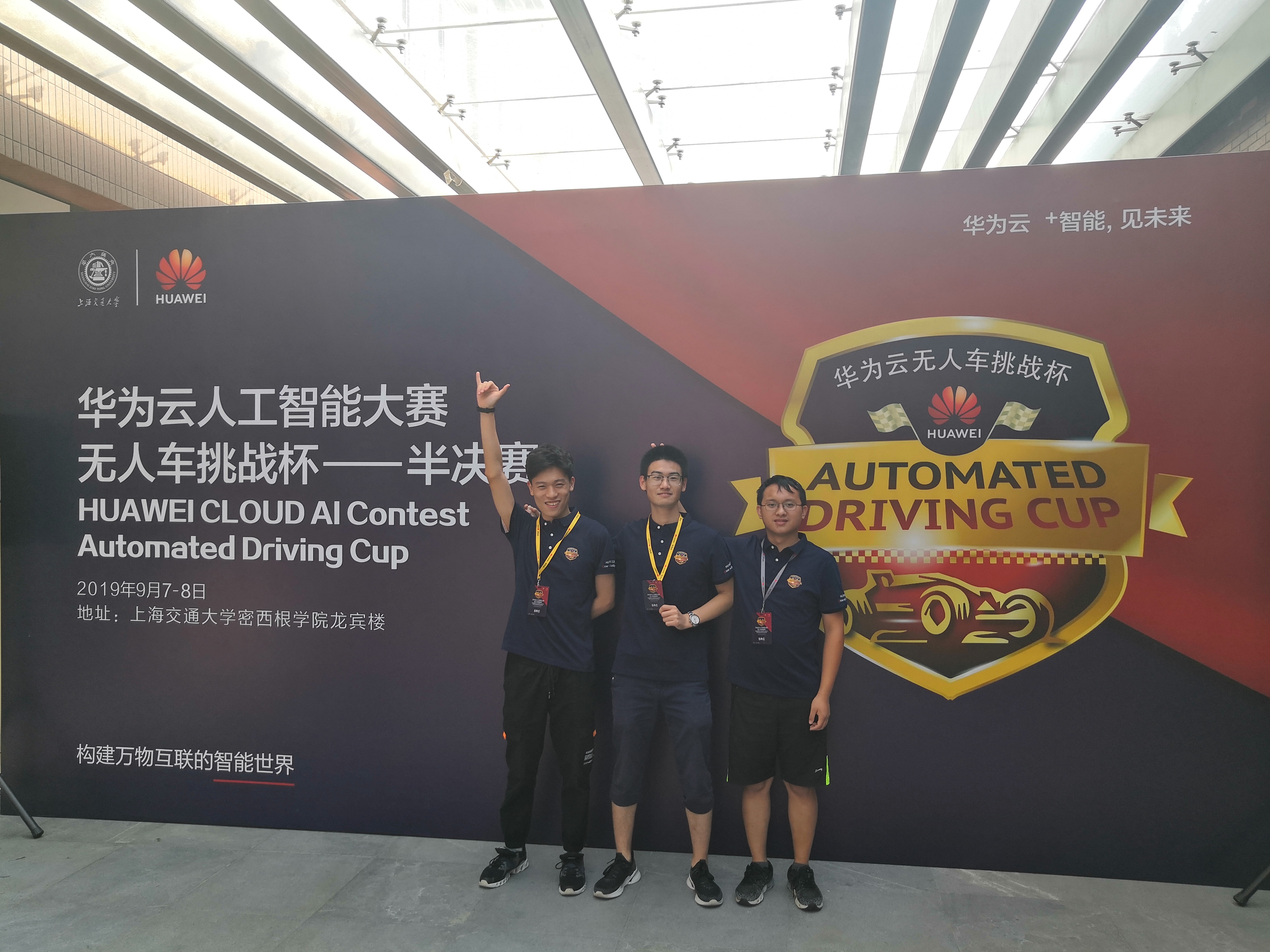 9月19-20日,華為云人工智能大賽無人車挑戰(zhàn)杯總決賽舉行,我院學(xué)子從10支隊伍中脫穎而出,勇奪冠季軍。其中秦正偉、石子康、謝嘉軒同學(xué)參加的SRC隊奪得冠軍,梁朝暉、來志敏同學(xué)參加的SJTU大四隊獲得季軍,郭風(fēng)朋、王振陽、程志偉、陳壯豪、蘇詩組成的智行者隊獲得優(yōu)勝獎。