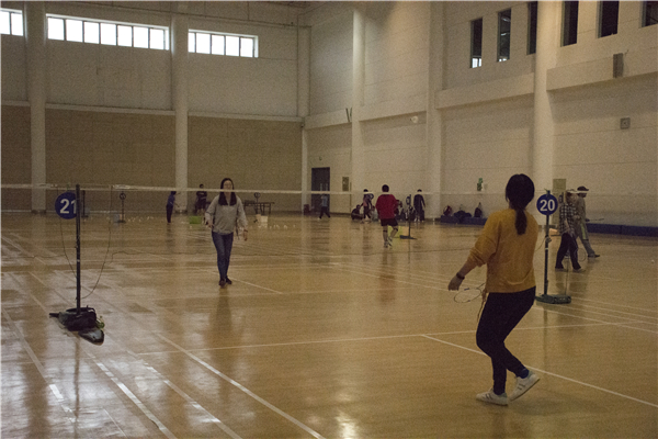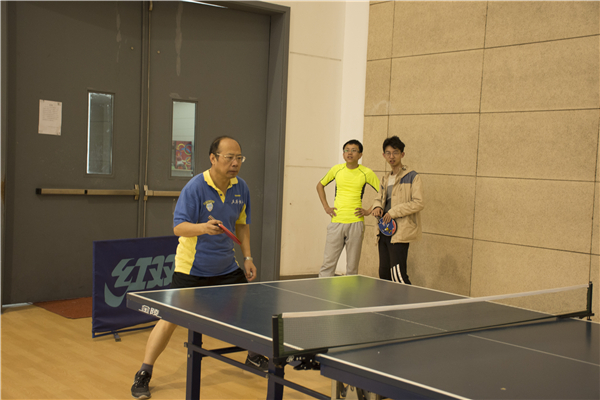 為了讓更多同學(xué)參與到歡送活動中,黨支部也為前來參加活動的同學(xué)們預(yù)訂了羽毛球和乒乓球場。在籃球賽進(jìn)行的同時,另外兩片場地上的運動氣氛也是相當(dāng)活躍,技術(shù)嫻熟者不時展現(xiàn)自己高超的球技,剛剛?cè)腴T者也不時向?qū)W長請教打球技巧。核學(xué)院王德忠老師也來到乒乓球場上與大家切磋球技。體育場上洋溢著歡樂的氣氛。