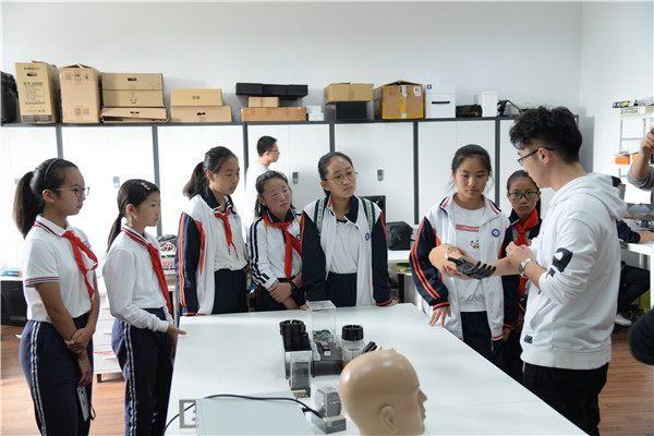 活動伊始,王志永向七寶實(shí)驗(yàn)中學(xué)的初中生們進(jìn)行了安全教育,他提示參觀過程中要時(shí)刻注意自身安全,未經(jīng)允許不得觸摸實(shí)驗(yàn)設(shè)備。隨后,孩子們被分成三個(gè)小組,由機(jī)器人所王志永、王金強(qiáng)、康沛琦帶隊(duì)依次對四個(gè)實(shí)驗(yàn)室進(jìn)行參觀體驗(yàn)。