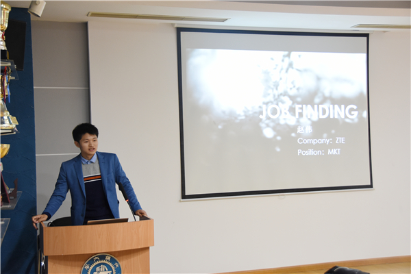 首先進行分享的是工業(yè)工程專業(yè)的汪彬。他從簡歷制作和無領導小組討論等方面結合自身經(jīng)驗進行了詳盡的講解。他認為簡歷要著重實習、學習成績、技能與獎勵三部分,其中實習部分要注重觀察,態(tài)度要自覺主動,通過觀察正式員工的工作收獲自己的心得體會。同樣來自工業(yè)工程的霍文斌,圍繞IT 行業(yè)求職經(jīng)驗進行了分享。他建議大家放寬視野,多了解行業(yè)動態(tài),做到有的放矢。