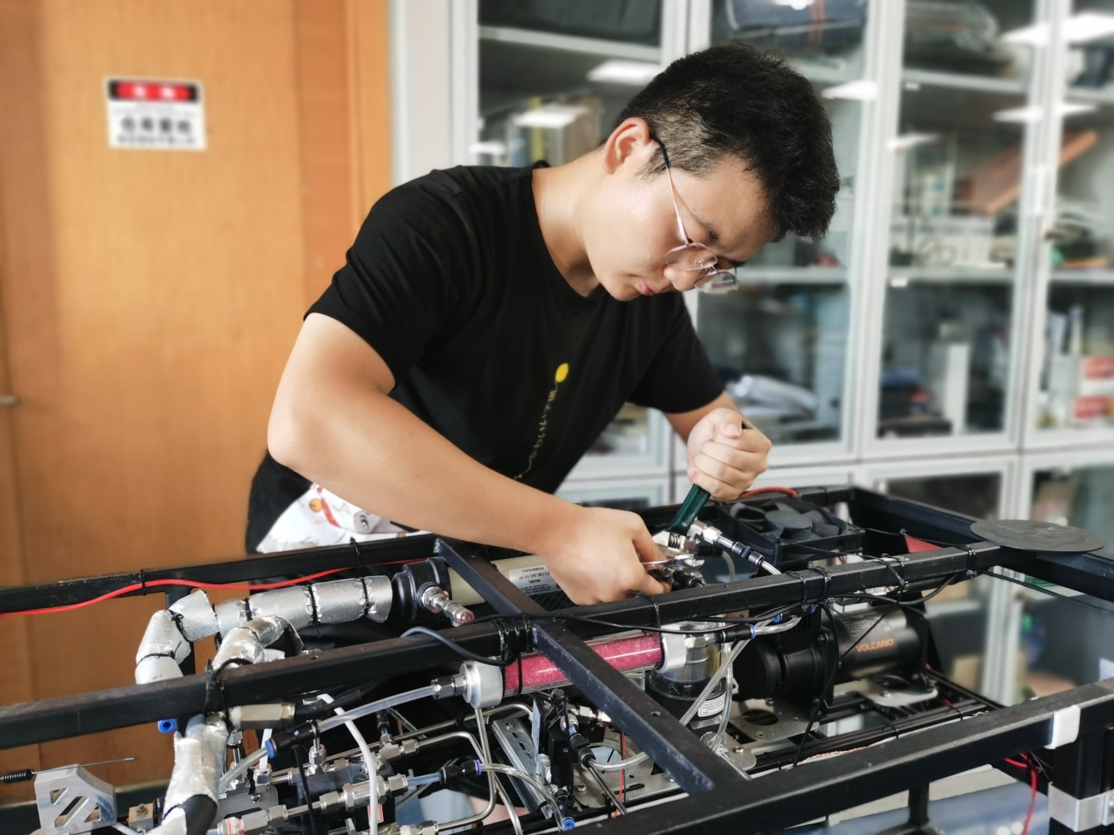 在課題組的鼓勵與支持下,張忠豪決心全身心投入到“挑戰(zhàn)杯”的備戰(zhàn)中。雖然早已對可能遇到的重重挑戰(zhàn)做足了心理準(zhǔn)備,可真正進(jìn)入比賽周期后,他還是感到責(zé)任重大、壓力陡增:總會有一個又一個意料不到的問題出現(xiàn)。那時,他和隊友常常一起感慨:“你永遠(yuǎn)不知道下一秒會遇到什么超乎預(yù)期的困難。”