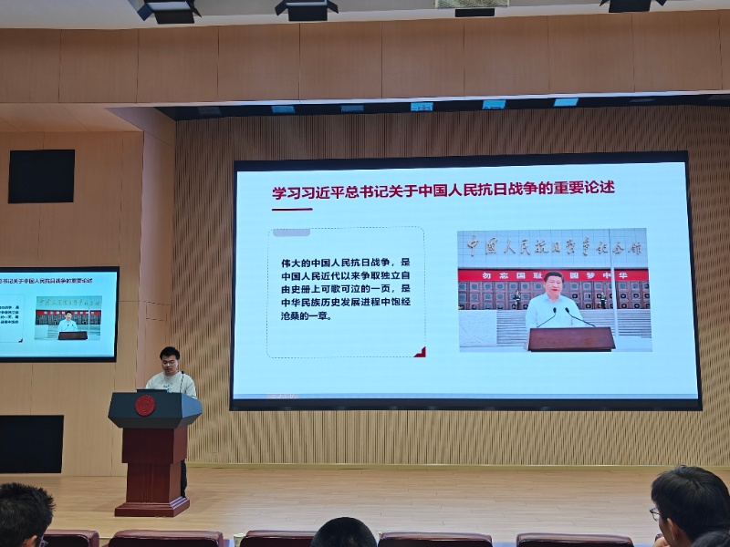 朱甬麒介紹了今年重裝所的新生情況,從思政教師的職責范圍角度介紹了相關工作,并針對日常事務、就業(yè)等相關內(nèi)容進行了指導。陳磊分享習近平總書記的重要論述,學習弘揚偉大抗戰(zhàn)精神,并呼吁團員青年積極向黨組織靠攏。