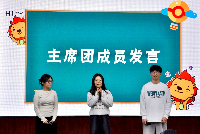 院團(tuán)委書記戴雨吟老師首先為本次大會(huì)致辭。她對(duì)團(tuán)委學(xué)生會(huì)許以衷心的祝愿,同時(shí)向團(tuán)委學(xué)生會(huì)的成員們提出三點(diǎn)期望,希望同學(xué)們能堅(jiān)定服務(wù)同學(xué)的初心,做全面發(fā)展的多面手,同時(shí)注重團(tuán)隊(duì)合作、加強(qiáng)隊(duì)伍建設(shè)。最后,她祝愿團(tuán)委學(xué)生會(huì)能夠永遠(yuǎn)年輕,越來(lái)越好。