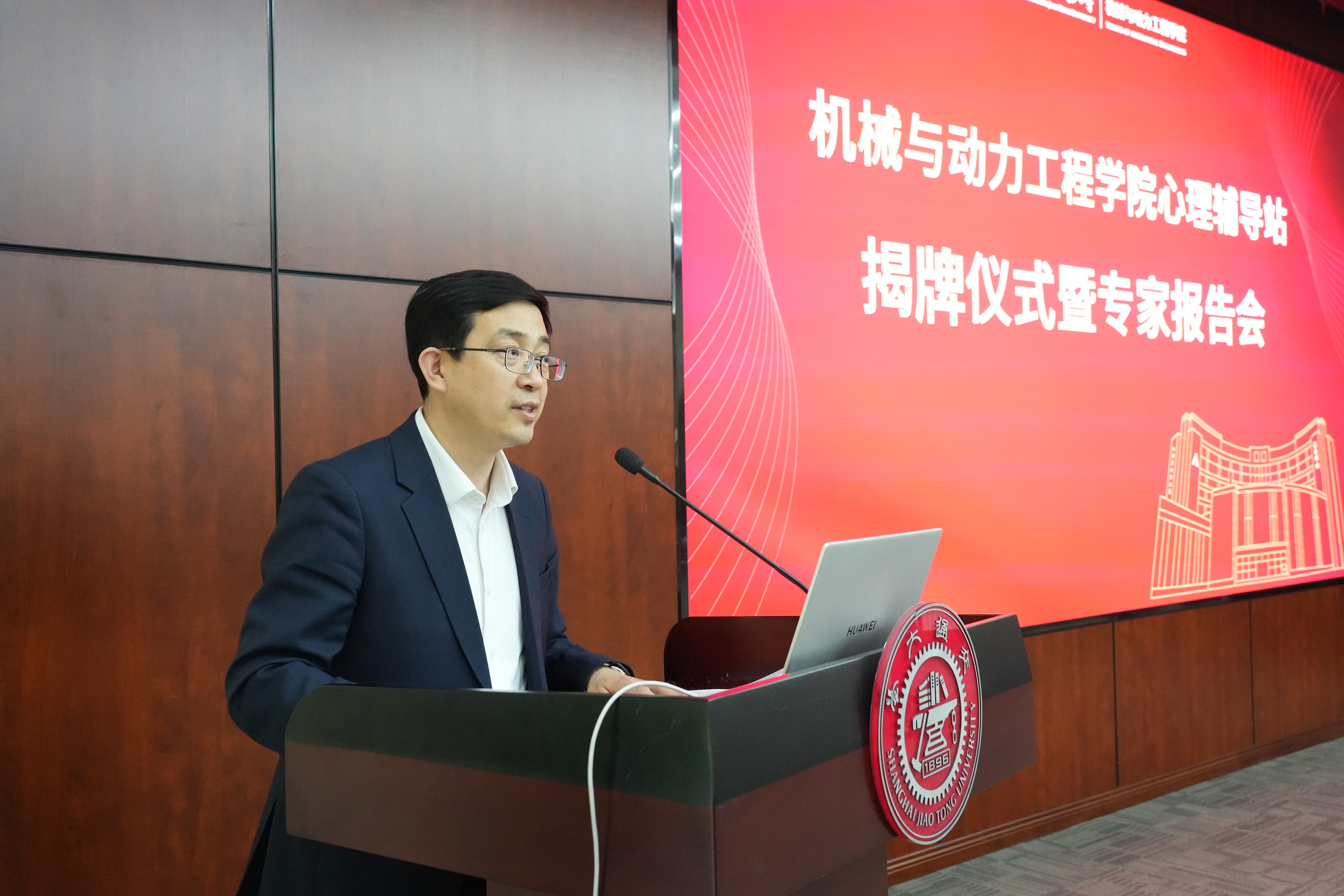 4月23日,機械與動力工程學院心理輔導(dǎo)站揭牌儀式暨指導(dǎo)專家報告會舉行。上海交通大學黨委副書記、副校長胡薇薇,人民武裝部部長、學生處副處長康健,校心理咨詢中心主任張洪英,機械與動力工程學院黨委書記胡永祥,學院班主任、導(dǎo)師、思政輔導(dǎo)員、陽光大使團學生等參加了活動。會議由學院黨委副書記張執(zhí)南主持。