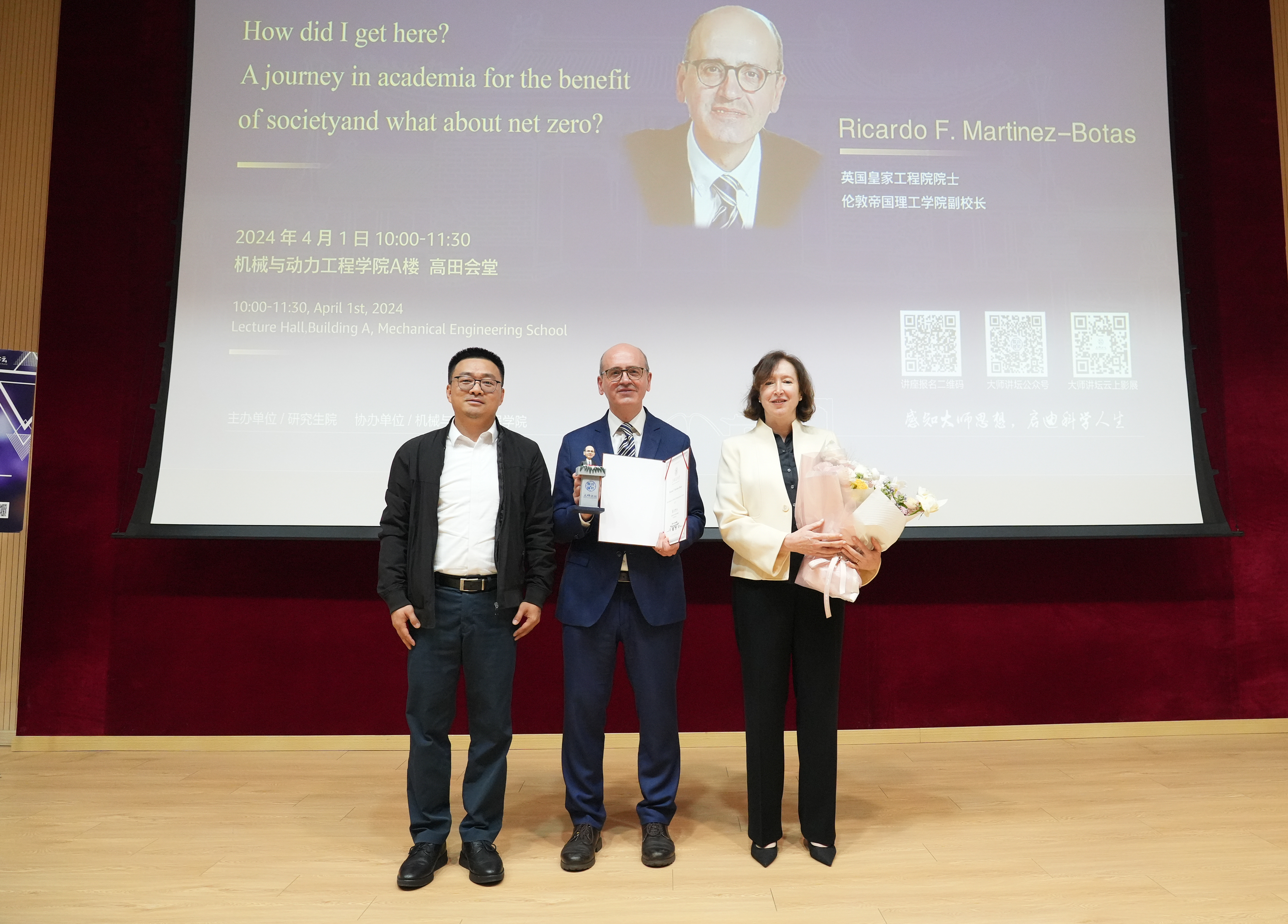 4月1日,英國(guó)皇家工程院院士、倫敦帝國(guó)理工學(xué)院副校長(zhǎng)Ricardo F. Martinez-Botas教授應(yīng)邀訪問(wèn)上海交通大學(xué),并作為第211期大師講壇嘉賓帶來(lái)主題為“How did I get here? A journey in academia for the benefit of society and what about net zero?”的精彩報(bào)告。機(jī)械與動(dòng)力工程學(xué)院院長(zhǎng)杜朝輝教授、副院長(zhǎng)朱磊教授,以及百余位師生參加了講壇。本次講壇由校研究生院主辦,機(jī)械與動(dòng)力工程學(xué)院協(xié)辦。