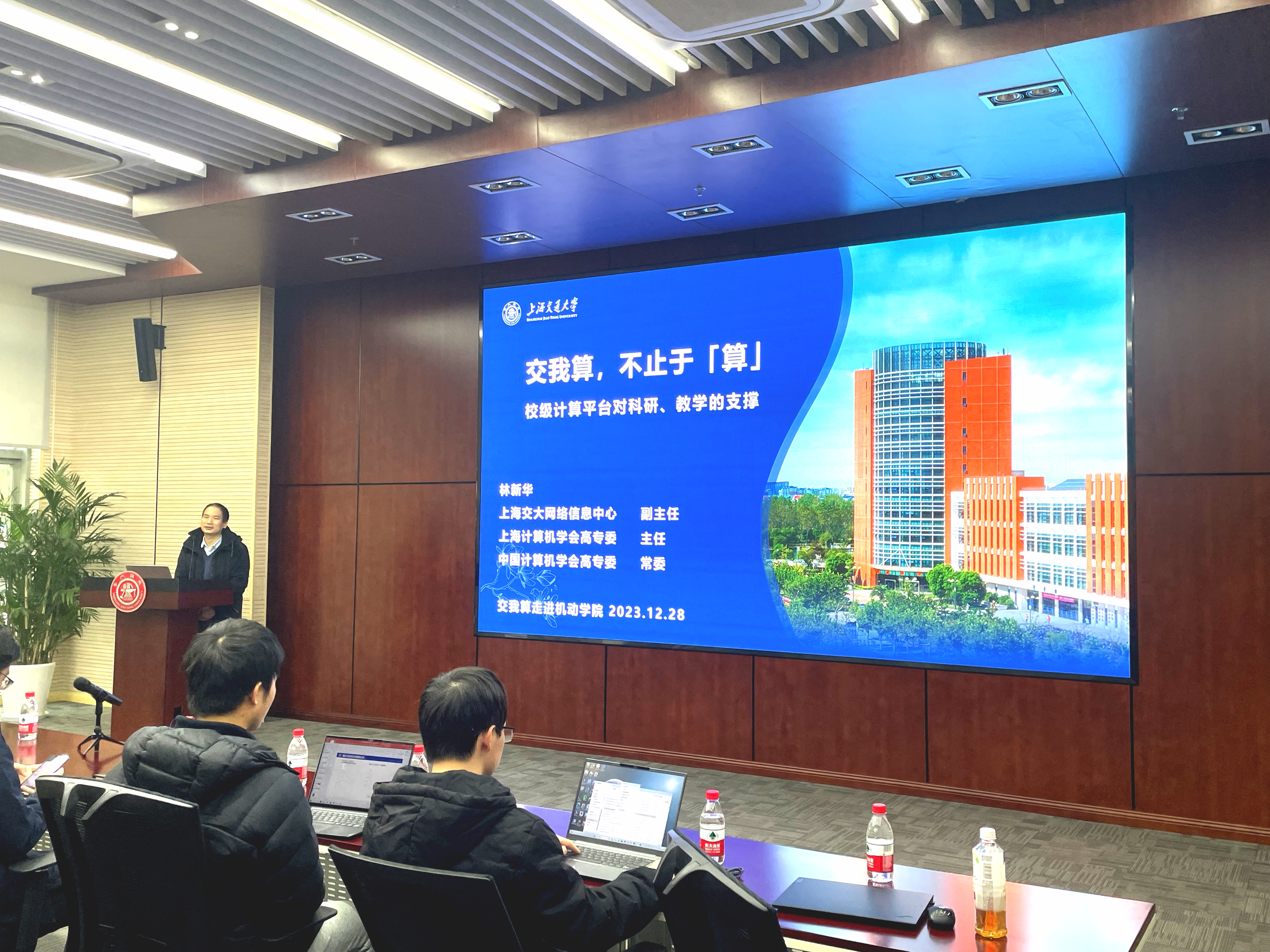 為助力師生更好地了解和利用校級計算平臺資源,12月28日,校網(wǎng)絡(luò)信息中心副主任林新華帶領(lǐng)“交我算”團(tuán)隊一行,走進(jìn)機(jī)械與動力工程學(xué)院,為學(xué)院師生作了五個主題的“交我算”平臺服務(wù)與應(yīng)用分享。學(xué)院副院長瞿葉高、師生代表等30余人參加了活動。