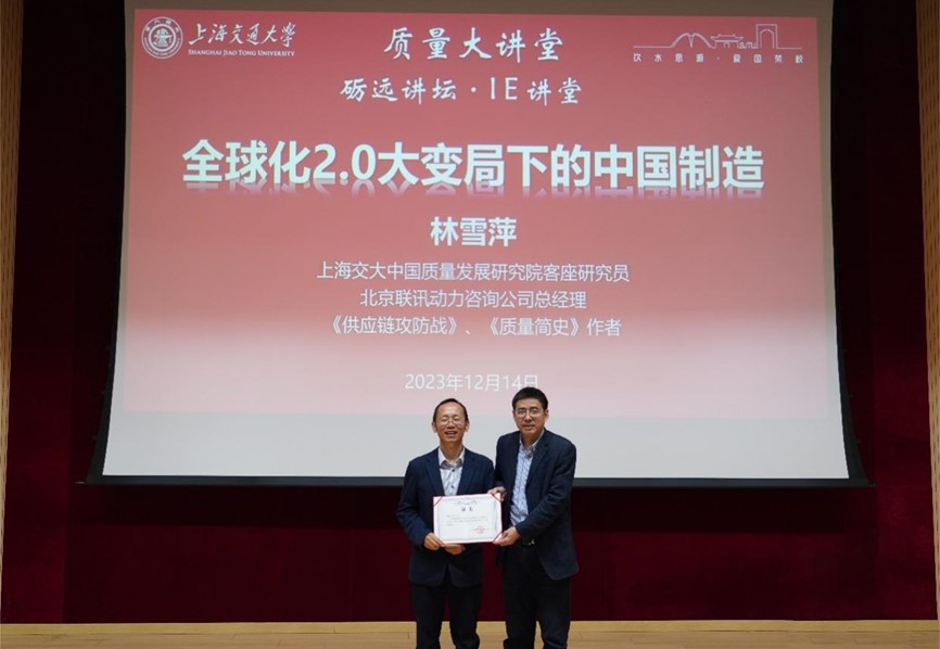 12月14日,上海交通大學中國質量發(fā)展研究院客座研究員、北京聯(lián)訊動力咨詢公司總經(jīng)理、《供應鏈攻防戰(zhàn)》作者林雪萍應邀,作為質量大講堂暨礪遠學術講壇及IE講堂嘉賓,帶來主題為“全球化2.0大變局下的中國制造”的精彩報告。