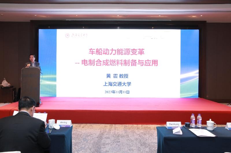 主旨報(bào)告環(huán)節(jié),專家們對(duì)車船動(dòng)力能源及動(dòng)力技術(shù)未來發(fā)展趨勢(shì)進(jìn)行了深層次分析與展望。黃震院士作了題為“車船動(dòng)力能源變革—電制合成燃料制備與應(yīng)用”的主旨報(bào)告。他指出碳中和目標(biāo)下我們正面臨一場(chǎng)史無前例的由化石能源走向新能源的能源綠色轉(zhuǎn)型,從國(guó)際上車船減碳政策的演進(jìn)趨勢(shì)看,全球汽車與船舶航運(yùn)業(yè)正加速進(jìn)入低碳和零碳時(shí)代。電制燃料是利用零碳電力,制取氫、氨和合成燃料,它既提供綠色燃料,又是一種新型儲(chǔ)能方式,在儲(chǔ)能規(guī)模和儲(chǔ)能時(shí)間方面具有獨(dú)特優(yōu)勢(shì),便于儲(chǔ)存與運(yùn)輸,可實(shí)現(xiàn)跨季節(jié)大規(guī)模儲(chǔ)能與廣域共享,是車船動(dòng)力能源綠色轉(zhuǎn)型的重要方向。沙特阿美全球研發(fā)中心交通戰(zhàn)略分析部部長(zhǎng) Hassan Babiker作了題為“可持續(xù)動(dòng)力技術(shù)展望”的報(bào)告,中遠(yuǎn)海運(yùn)集團(tuán)上海遠(yuǎn)洋運(yùn)輸有限公司董事長(zhǎng)秦江平作“把握政策和策略,推進(jìn)集運(yùn)綠色轉(zhuǎn)型發(fā)展”報(bào)告,青海民族大學(xué)副校長(zhǎng)、天津大學(xué)講席教授堯命發(fā)分享報(bào)告“燃料儲(chǔ)能在(凈)零碳能源系統(tǒng)應(yīng)用探討”,全球甲醇行業(yè)協(xié)會(huì)中國(guó)區(qū)首席代表趙凱以“甲醇能源應(yīng)用及進(jìn)展”為主題進(jìn)行了報(bào)告分享。