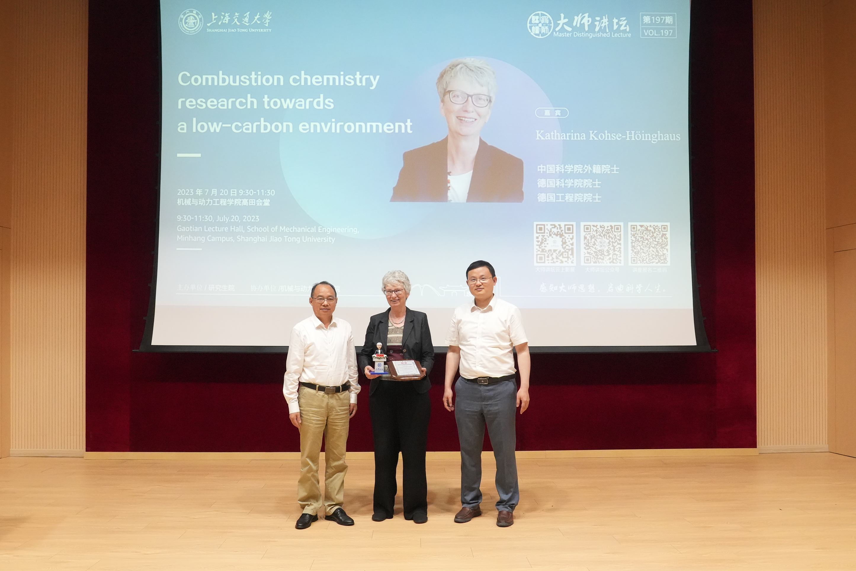 7月20日,中國科學(xué)院外籍院士、歐洲科學(xué)院院士、德國科學(xué)院院士、德國工程院院士、國際燃燒學(xué)會前主席Katharina Kohse-Höinghaus應(yīng)邀訪問上海交通大學(xué),并作為第197期大師講壇嘉賓,帶來主題為“面向低碳未來的燃燒化學(xué)研究”的精彩報告。