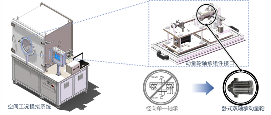 “空間動量輪軸承摩擦力矩試驗機及其試驗方法”專利原創(chuàng)性地提出“動量輪軸承組件專用接口+消除附加扭矩的徑向載荷施加系統(tǒng)+徑向和軸向載荷精準測量方案”的空間軸承組件摩擦力矩測試技術(shù),解決了模擬空間環(huán)境和工況下的動量輪軸承組件摩擦力矩高精度實時測量難題。目前,該專利技術(shù)已應(yīng)用于飛輪、控制力矩陀螺等主力空間姿控執(zhí)行機構(gòu)的研制,提升了測試覆蓋水平,節(jié)約了測試周期和成本,支撐了多個重要產(chǎn)品交付和型號首飛任務(wù)。該專利技術(shù)系通用技術(shù),可滿足不同工況、不同領(lǐng)域軸承摩擦力矩測試需求,易拓展及實現(xiàn)系列化推廣應(yīng)用。