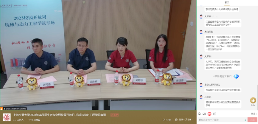 6月17日,上海交通大學“線上校園開放日”機械與動力工程學院專場活動順利舉行,全國各地考生及家長齊聚云端,通過觀看視頻、聆聽宣講、線上交流等,深入了解了學院專業(yè)建設(shè)、人才培養(yǎng)模式、畢業(yè)發(fā)展方向等,1.4萬名考生及家長在線參加了活動。