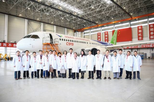 2017年4月11日,林忠欽院士、交大參與民機(jī)試飛工作的相關(guān)教師在C919首架機(jī)合影