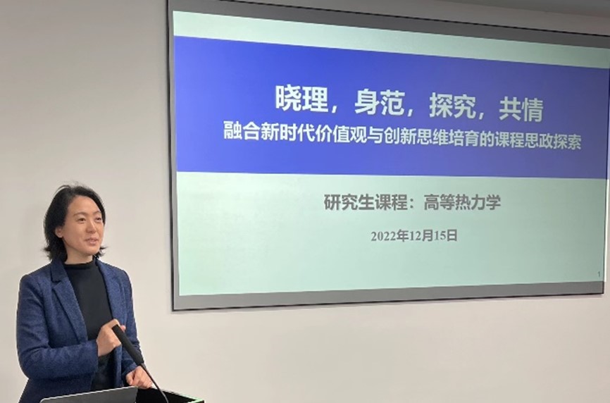 王麗偉做《融合新時(shí)代價(jià)值觀與創(chuàng)新思維培育的課程思政探索》經(jīng)驗(yàn)分享,闡述了如何從“曉理、身范、探究、共情”四個(gè)層次,獲得課程思政啟發(fā)、實(shí)踐、理解、共鳴逐級(jí)遞升的教學(xué)效果,表示教學(xué)發(fā)展中心將全力支持配合學(xué)院,為廣大教師提供培訓(xùn)資源服務(wù)。