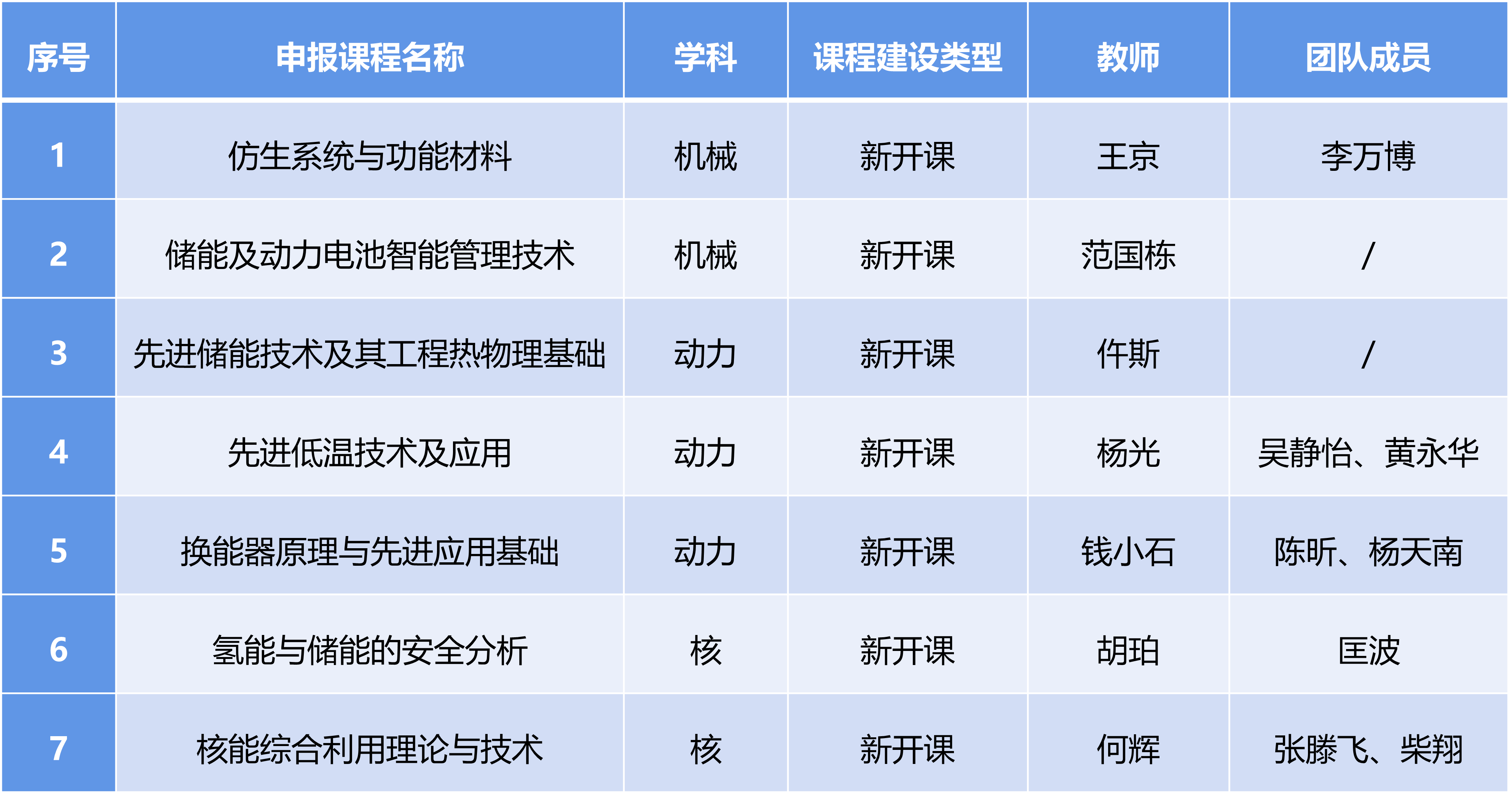 《仿生系統(tǒng)與功能材料》等3門機(jī)械學(xué)科課程、《先進(jìn)儲(chǔ)能技術(shù)及其工程熱物理基礎(chǔ)》等5門動(dòng)力學(xué)科課程、《核能綜合利用理論與技術(shù)》等3門核學(xué)科課程的負(fù)責(zé)人,從課程定位與內(nèi)容、國內(nèi)外課程開設(shè)情況、課程前沿性和必要性、課程建設(shè)目標(biāo)、課程體系設(shè)計(jì)等方面進(jìn)行了詳細(xì)闡述。經(jīng)評(píng)審,《換能器原理與先進(jìn)應(yīng)用基礎(chǔ)》等7門課程獲批立項(xiàng),建設(shè)周期分為1年期(2023年9月-2024年7月)和1.5年期(2023年3月-2024年7月)兩類。