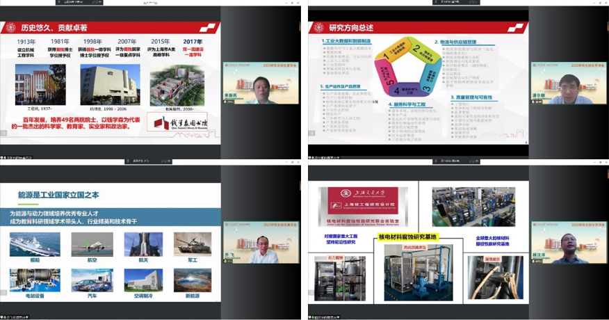 5月29日,機械與動力工程學院2023年研究生招生宣講會在線舉行。學院院長杜朝輝、副院長李玉陽、薄板結(jié)構(gòu)制造研究所所長來新民、工業(yè)工程與管理系主任潘爾順、航空動力研究所所長齊飛、核科學與工程學院院長顧漢洋等,與廣大學子相聚云端,就2023年研究生優(yōu)秀生源選拔與榮譽計劃夏令營活動進行了宣講與交流。