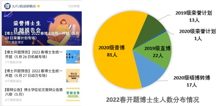為進(jìn)一步規(guī)范博士生培養(yǎng)的過程管理,激發(fā)學(xué)生自律性,增強朋輩引導(dǎo)學(xué)習(xí)效果,營造“公平、公正、公開”的學(xué)術(shù)自治文化氛圍,學(xué)院自2019年9月起開始施行博士生統(tǒng)一開題報告會,每學(xué)年統(tǒng)一組織2次。博士生統(tǒng)一開題將博士學(xué)位論文質(zhì)控點前移,有助于保障學(xué)位論文進(jìn)度,切實提升博士生培養(yǎng)質(zhì)量。