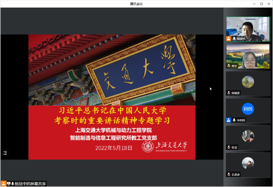 5月18日,智能制造與信息工程研究所教工黨支部召開線上主題黨日活動,學習貫徹習近平總書記在中國人民大學考察時的重要講話精神。